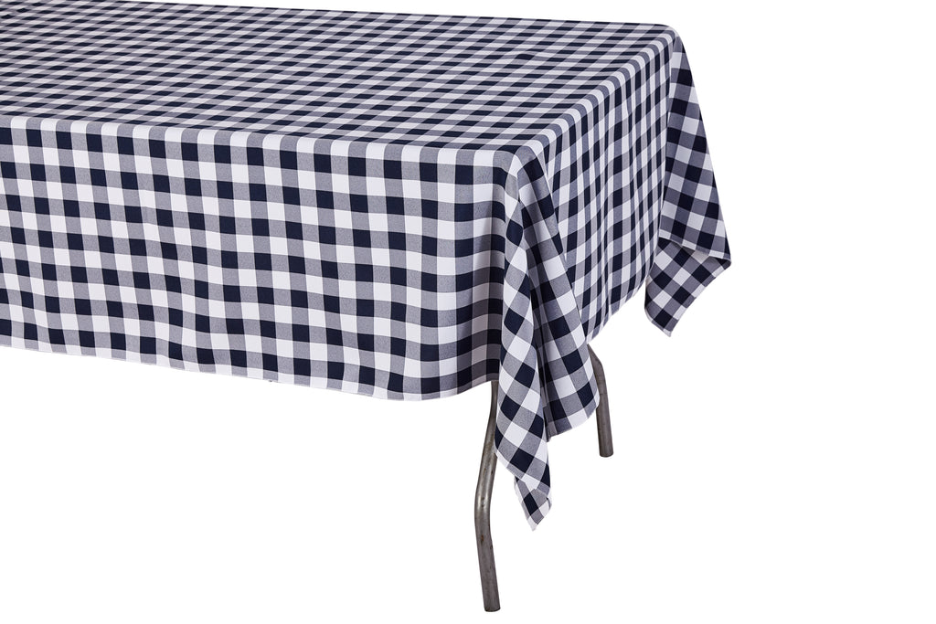 60 x 102 inch Rectangular Tablecloth Navy and White Check Polyester