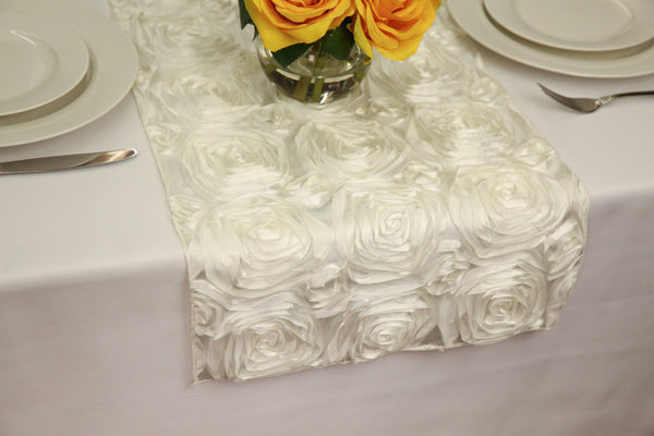 Ivory Satin Ribbon Rosette Table Runner | Wedding Table Runners