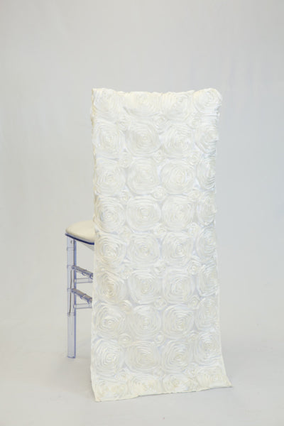 Ivory Satin Ribbon Rosette Chiavari Chair Cover