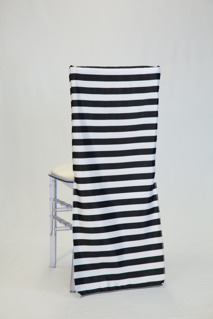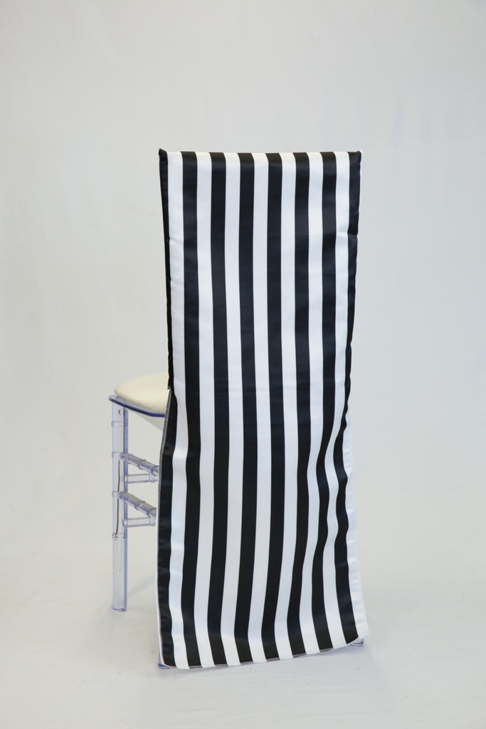 Black and White Striped L'Amour Satin Chiavari Chair Cover