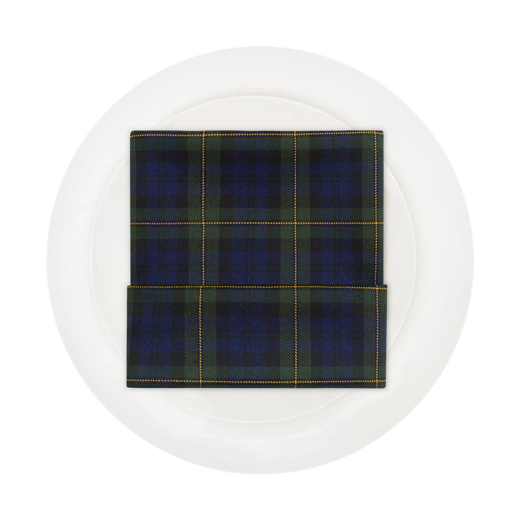 Evergreen Tartan napkins pair beautifully with matching tablecloths and runners or can be styled on their own with neutral linens, gold flatware, greenery, or velvet accents for a refined tablescape.