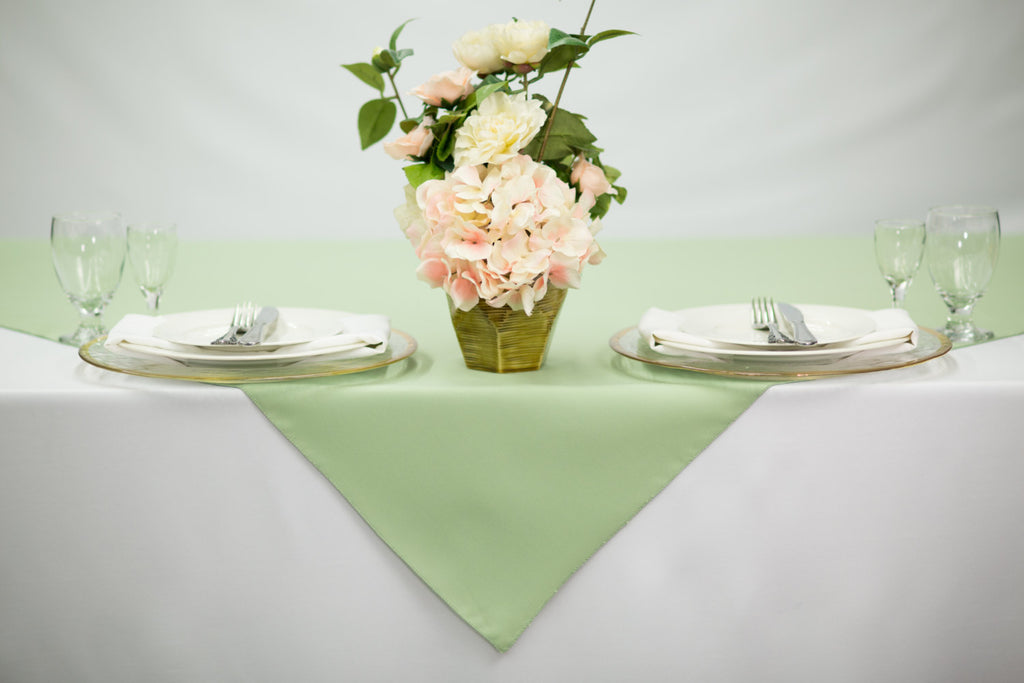 Zhen LinenOur polyester overlay tablecloths are the ideal choice for any setting. With a variety of colors to choose from, you can design any event, informal or formal. Polyester is not only soft but stain-resistant, wrinkle-resistant, and it's the toughest material we have. A 54 inch square sage polyester tablecloth is seamless and durable to withstand several uses for large banquet events and restaurants. Extremely versatile so it can be dressed up for an ultimate glam event or can even be used as a clean modern look for a minimalist event. Pair with any texture such as vintage linen or velvet to enhance your event decor.