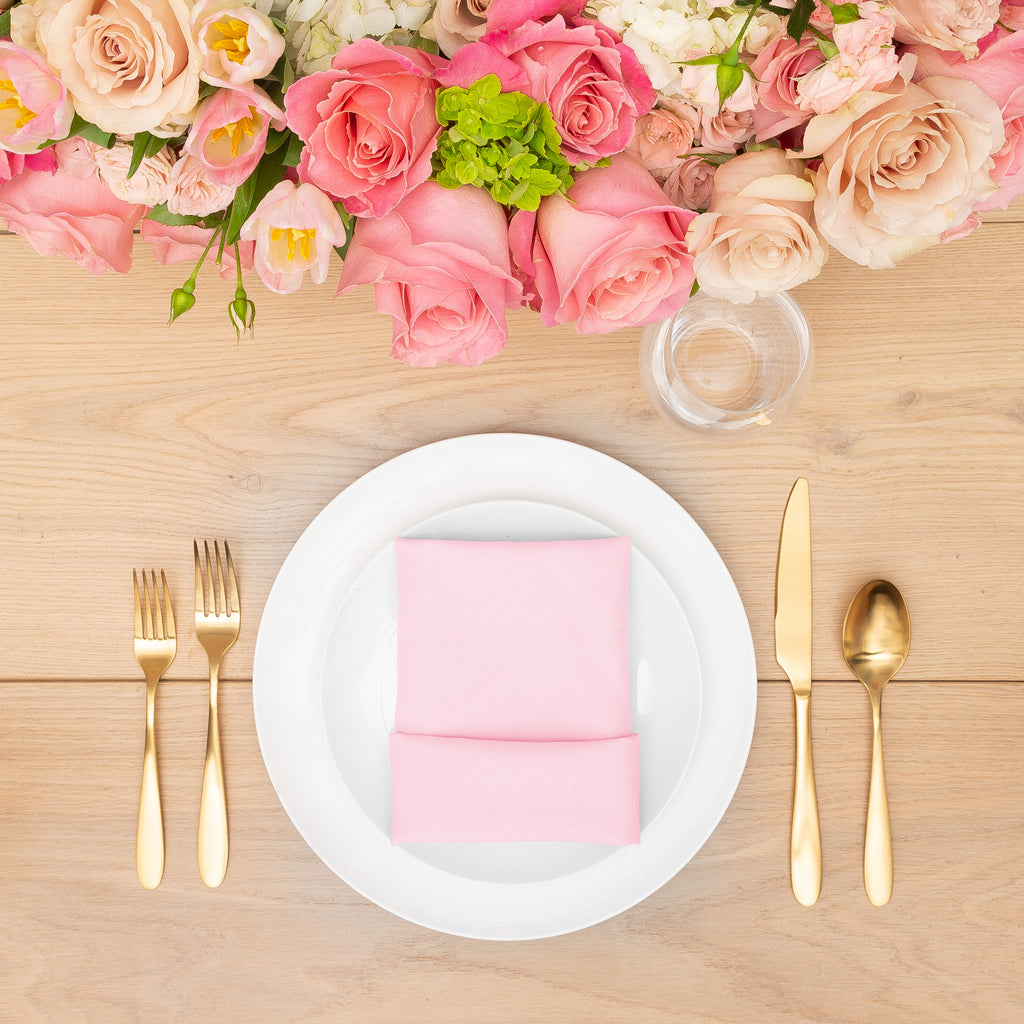 Zhen LinenOur polyester napkins add the perfect accent to any table setting. With a variety of colors to choose from, you can design any event, informal or formal. Our napkins are soft yet durable, stain-resistant, and wrinkle-resistant. Pair the napkins with napkin rings for a statement your guests will sure not forget!