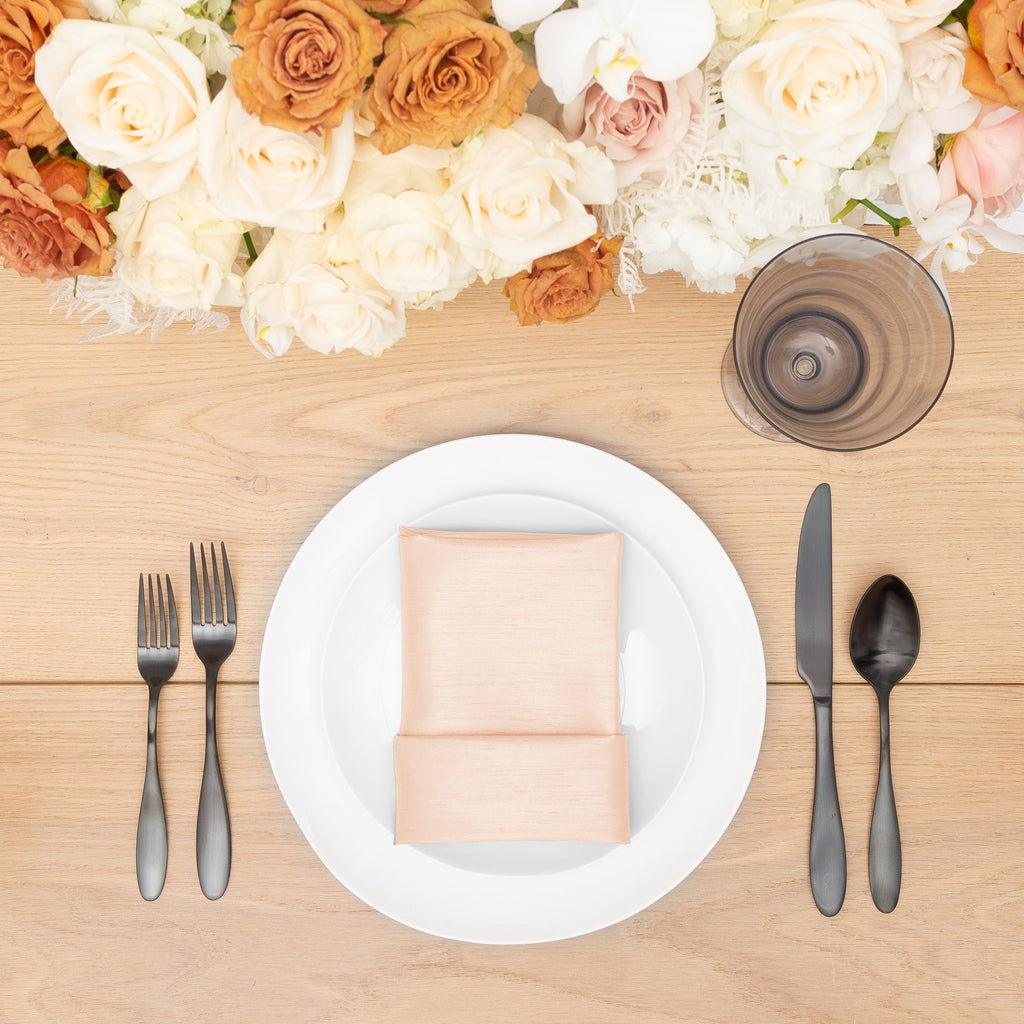 These cloth napkins are reversible and designed to be wrinkle and stain resistant. Napkins feature a seamless design with serged edges and are made of durable 100% polyester. May be machine washed and can be used countless times. Reversible with one side faux slub dupioni and the other side satin. Both sides are beautiful and therefore can be used for multiple functions.