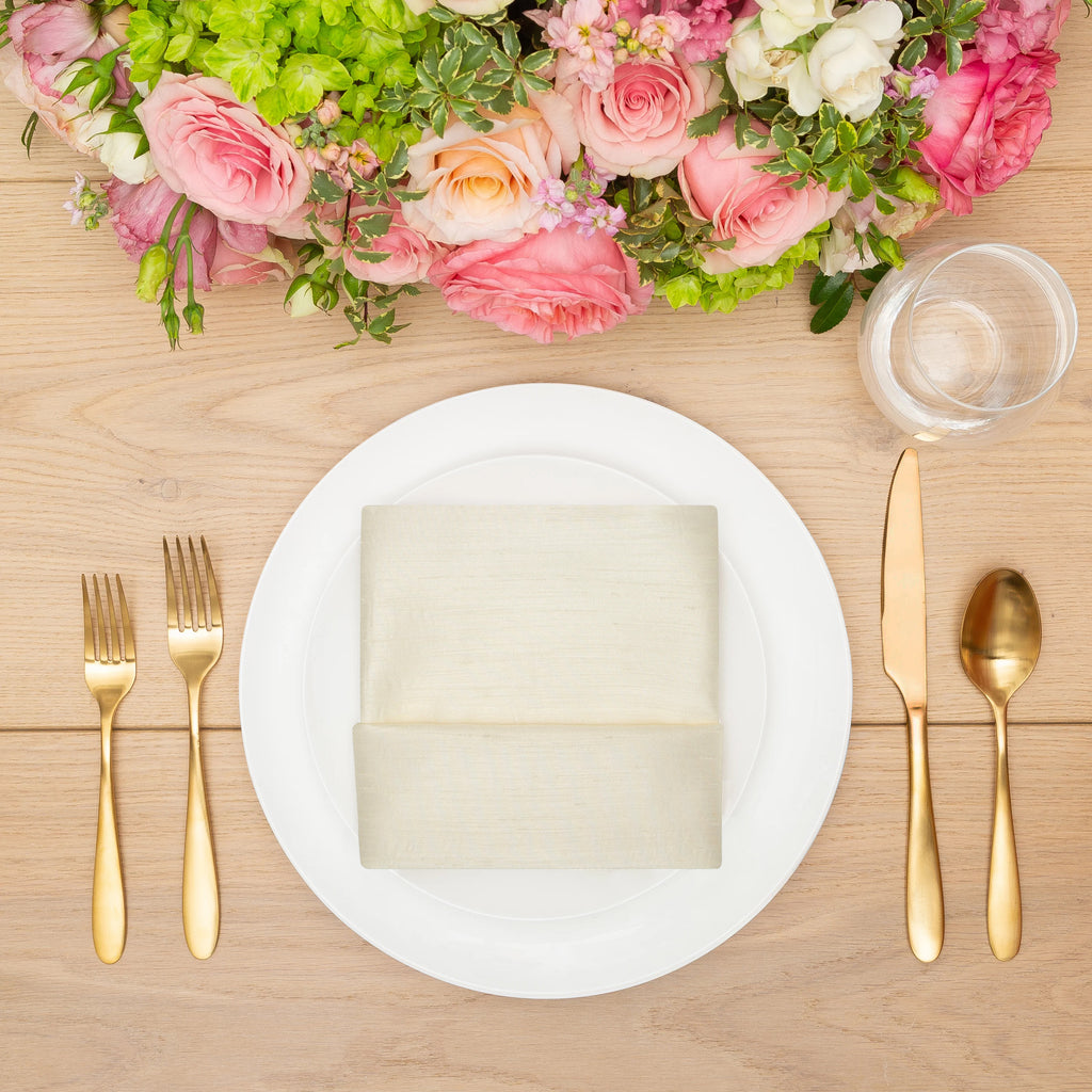 These cloth napkins are reversible and designed to be wrinkle and stain resistant. Napkins feature a seamless design with serged edges and are made of durable 100% polyester. May be machine washed and can be used countless times. Reversible with one side faux slub dupioni and the other side satin. Both sides are beautiful and therefore can be used for multiple functions.