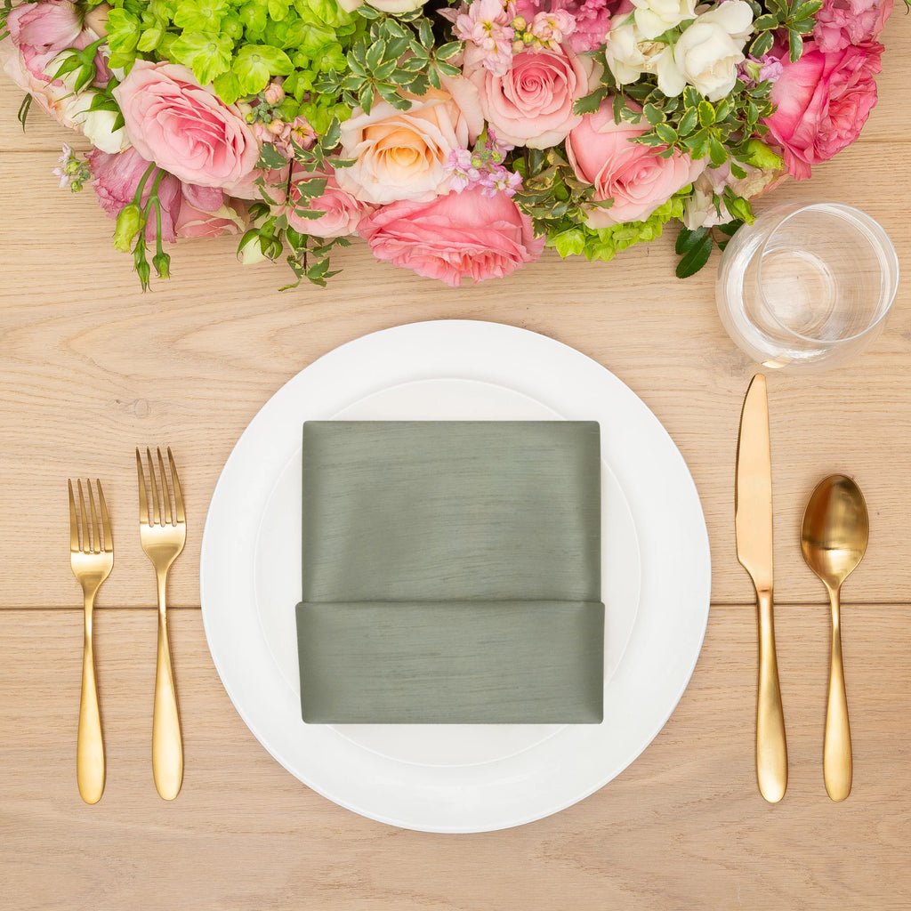 These cloth napkins are reversible and designed to be wrinkle and stain resistant. Napkins feature a seamless design with serged edges and are made of durable 100% polyester. May be machine washed and can be used countless times. Reversible with one side faux slub dupioni and the other side satin. Both sides are beautiful and therefore can be used for multiple functions.