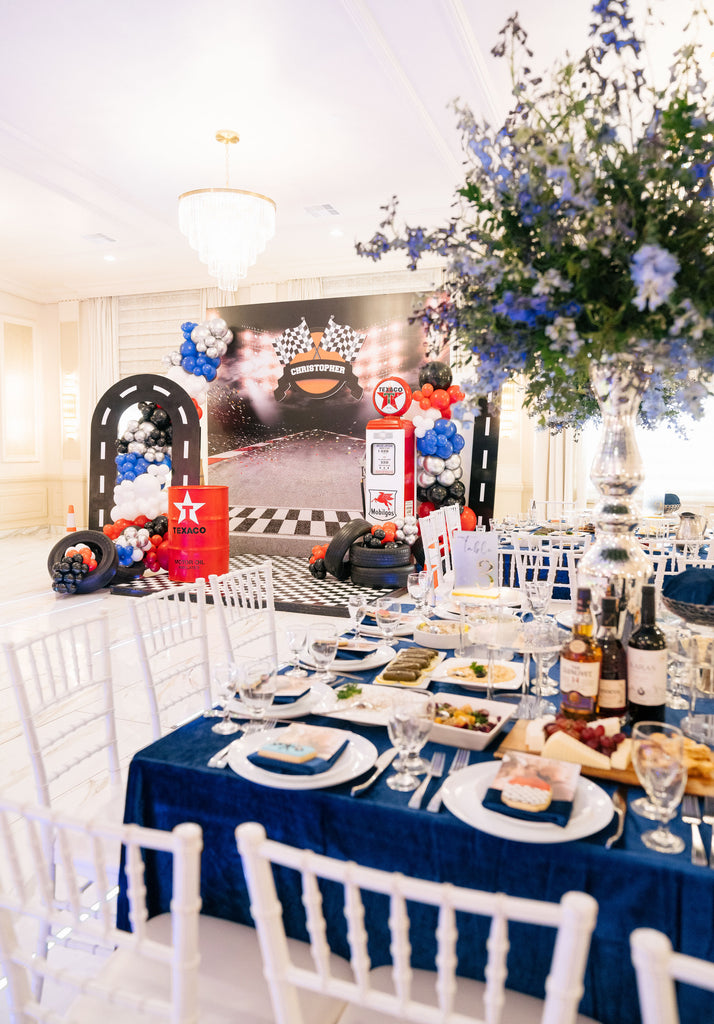 Tablecloths, table runners, chair covers, and drapery available in matching fabric and color.