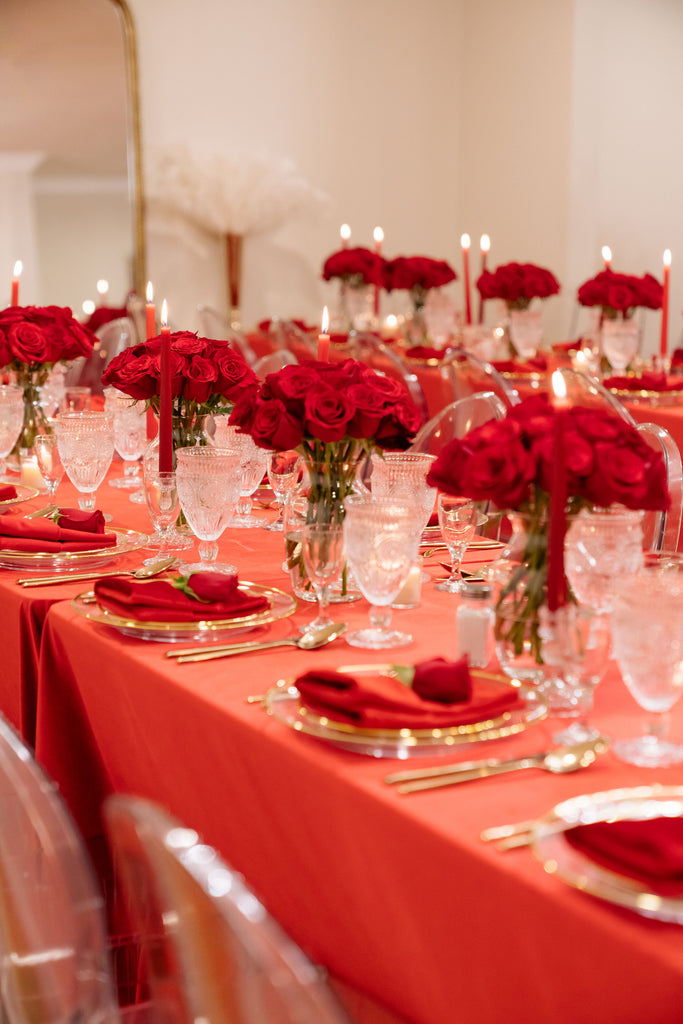 Tablecloths, table runners, chair covers, and drapery available in matching fabric and color.