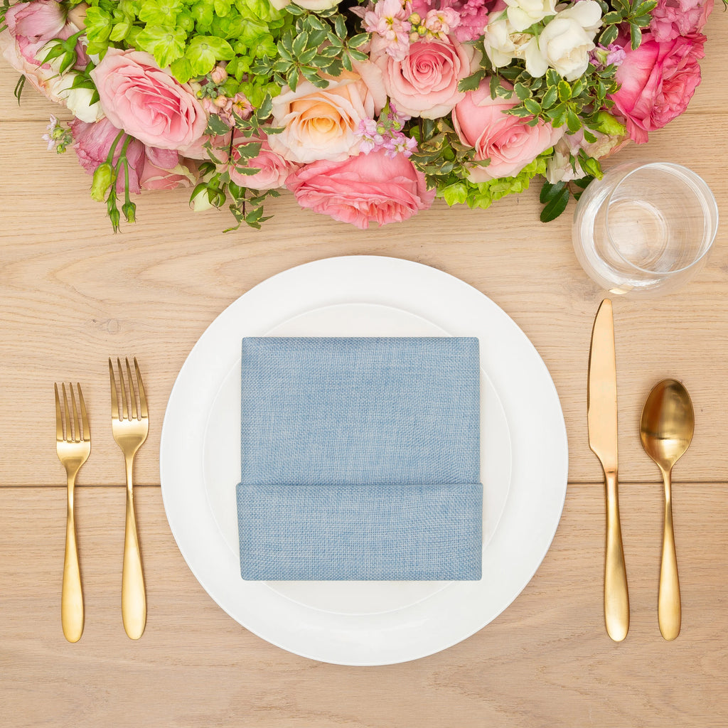 Our faux burlap napkins add the perfect accent to any table setting. With a variety of colors to choose from, you can design any event, informal or formal. Our napkins are soft yet durable, stain-resistant, and wrinkle-resistant. Pair the napkins with napkin rings for a statement your guests will sure not forget!